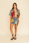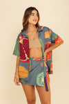 Camisa con fit oversize elaborada en SEDA MANGO compuesta de 95% polyester y 5% elastano de 130 gramos con estampación en técnica de sublimación. La silueta es muy amplia, tiene botonadura en resina de coco sobre toda la perilla y puede servirle a hombres y mujeres. Este textil no tiene elongación, es decir, no estira ni sede. También tiene textura liviana, ligera y cuenta con muy buena caída.