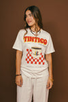 Camiseta con silueta oversize elaborada en 100% Algodón de 200 gramos con estampación digital en DTF de alta calidad. Tiene buena elongación (si estira) y es muy suave al tacto con silueta amplia y buena caída.