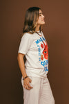 Camiseta con silueta oversize elaborada en 100% Algodón de 200 gramos con estampación digital en DTF de alta calidad. Tiene buena elongación (si estira) y es muy suave al tacto con silueta amplia y buena caída.