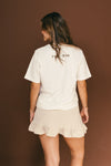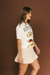 Camiseta con silueta oversize elaborada en 100% Algodón de 200 gramos con estampación digital en DTF de alta calidad. Tiene buena elongación (si estira) y es muy suave al tacto con silueta amplia y buena caída.