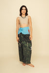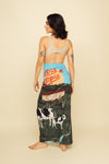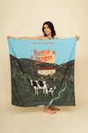 Recuadro de 1.15x1.15 centímetros elaborado en SEDA MANGO compuesta de 95% polyester y 5% elastano de 130 gramos con estampación en técnica de sublimación. Este accesorio tiene varias opciones de uso como pareo, top, adorno, etcétera.