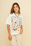 Camiseta con silueta oversize elaborada en 100% Algodón de 200 gramos con estampación digital en DTF de alta calidad. Tiene buena elongación (si estira) y es muy suave al tacto con silueta amplia y buena caída.
