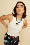 Camisilla elaborada en poli algodón con estampación digital en DTF de alta calidad. Tiene elongación media (si estira, pero poco) y es muy suave al tacto con silueta amplia y buena caída.