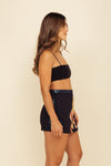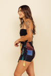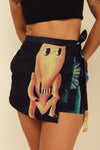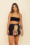 Falda short tiro medio elaborada en tejido plano apariencia lino 100% poliéster de 140 gramos con estampación en técnica de sublimación y muy suave al tacto. Tiene caída ligera y liviana. La silueta es semi amplía con posibilidad de ajustarla con cinturón sobrepuesto en la parte frontal.