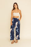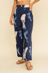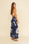 Pantalón tipo “straight” elaborado en SEDA MANGO compuesta de 95% polyester y 5% elastano de 130 gramos con estampación en técnica de sublimación. La silueta es totalmente recta y es más ajustada en la parte de la cintura pues está entallada y es tiro alto. Tiene prenses en la parte superior y en la bota y a pretina está enresortada en la parte de atrás y tiene botón y cierre en la parte frontal.