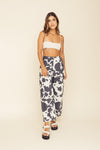 Enterizo elaborado en tejido plano o DRILL DLGADO compuesto de 59% Algodón, 3% Spandex y 38% Poliéster con textura muy suave al tacto. La caída es ligera y la tela no tiene elongación (es decir qué no estira). La silueta de esta pieza es semi ajustada con bota recta y entallada en la parte de la cintura con tiro alto y doblez en botas.