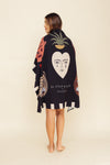 Pañuelo tipo pareo elaborada en Seda compuesta de 95% polyester y 5% elastano de 130 gramos con estampación en técnica de sublimación. Es un recuadro con medidas de 1.15 centímetros por 1.15 centímetros aproximadamente qué puede usarse como pareo.