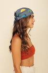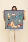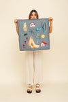 Pañoleta elaborada en Seda compuesta de 95% polyester y 5% elastano de 130 gramos con estampación en técnica de sublimación. Es un recuadro con medidas de 60 centímetros por 60 centímetros aproximadamente qué puede usarse como bandana o accesorio.