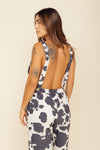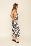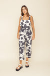 Enterizo elaborado en tejido plano o DILL DELGADO compuesto de 59% Algodón, 3% Spandex y 38% Poliéster con textura muy suave al tacto. La caída es ligera y la tela no tiene elongación (es decir qué no estira). La silueta de esta pieza es semi ajustada y cuenta con cargaderas ajustables con botones en resina de coco en la parte posterior y cinturón anudable para usar adelante o atrás para ajustar a silueta.
