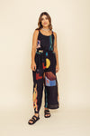 Enterizo elaborado en tejido plano apariencia lino 100% poliéster de 140 gramos con estampación en técnica de sublimación y muy suave al tacto. La caída es ligera y la tela no tiene elongación (es decir qué no estira). La silueta de esta pieza es semi amplia en la parte superior pues tiene cargaderas ajustables en la parte de la espalda y están enresortadas qué se adaptan a medida con nudo.