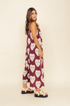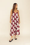 Enterizo corto elaborado en Seda compuesta de 95% polyester y 5% elastano de 130 gramos con estampación en técnica de sublimación. La silueta es muy amplia en corte tipo triángulo, tiene cargaderas ajustables con tensor en los hombros y forro/falso interno a la altura del pecho. Este textil no tiene elongación, es decir qué no estira, tiene textura liviana, ligera y con muy buena caída.