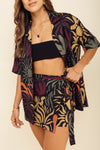 Camisa tipo oversize elaborada en Seda compuesta de 95% polyester y 5% elastano de 130 gramos con estampación en técnica de sublimación. La silueta es muy amplia tipo oversize unisex, tiene botonadura en resina de coco en toda la perilla y mangas anchas. Este textil no tiene elongación, es decir qué no estira, tiene textura liviana, ligera y con muy buena caída.