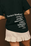 Camiseta con silueta oversize elaborada en 100% Algodón de 200 gramos con estampación digital en DTF de alta calidad. Tiene buena elongación (si estira) y es muy suave al tacto con silueta amplia y buena caída.
